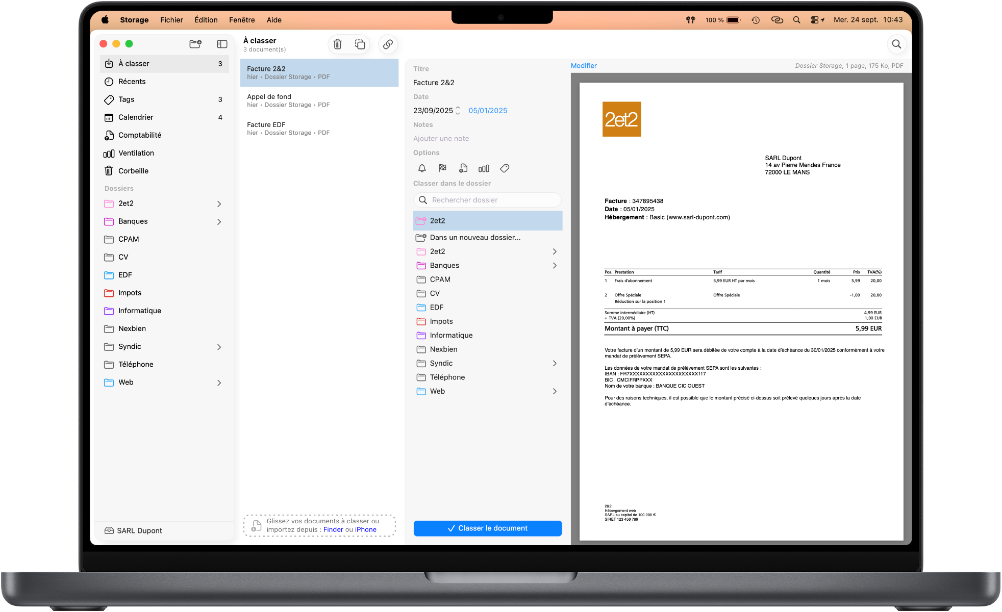 Storage est un logiciel de Gestion Electronique de Documents (GED) pour Mac dédié aux professionnels et particuliers.