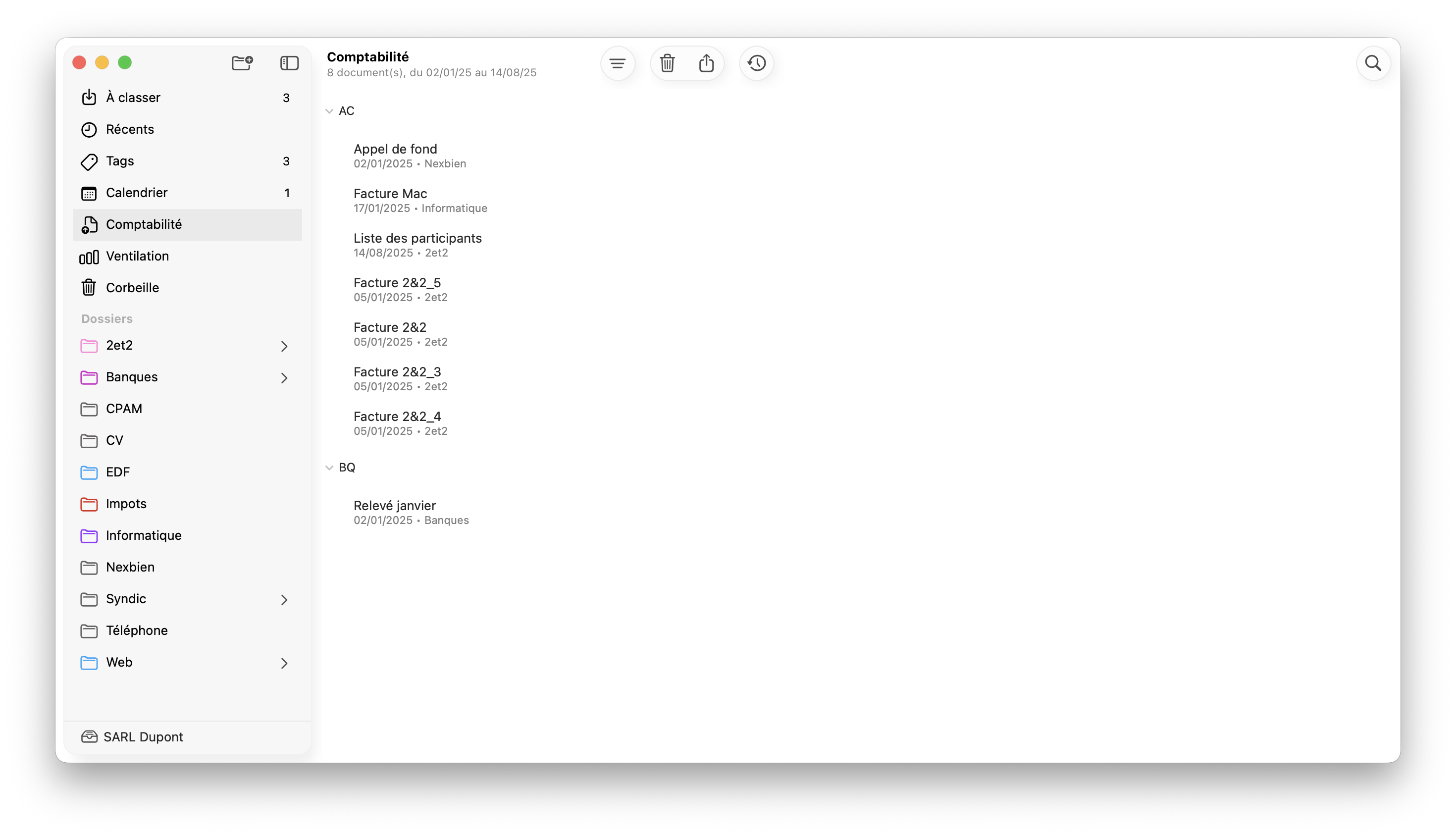 Comptabilité affiche tous les documents que vous avez ajoutés en "Comptabilité".