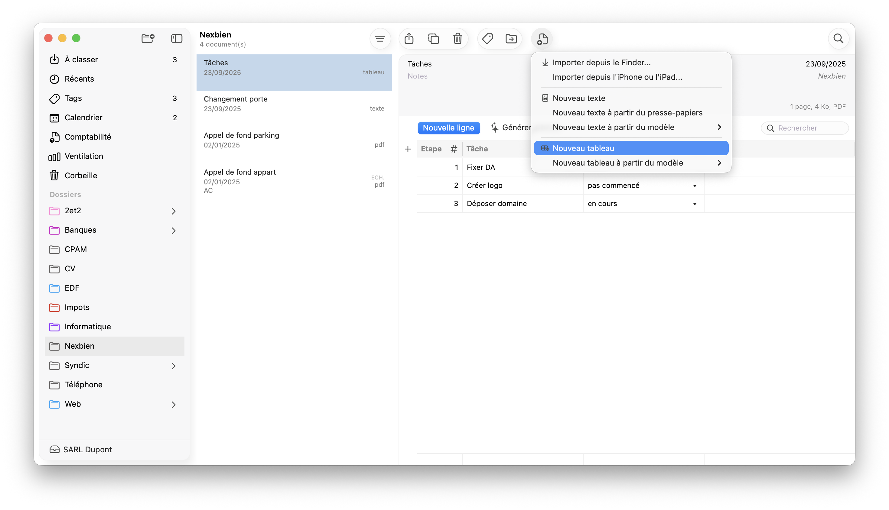 2. Créer un Nouveau Tableau : Dans la barre d'outils, cliquez sur la ligne intitulée "Nouveau tableau" (capture ci-dessous). Un tableau vierge sera alors créé dans le dossier sélectionné.