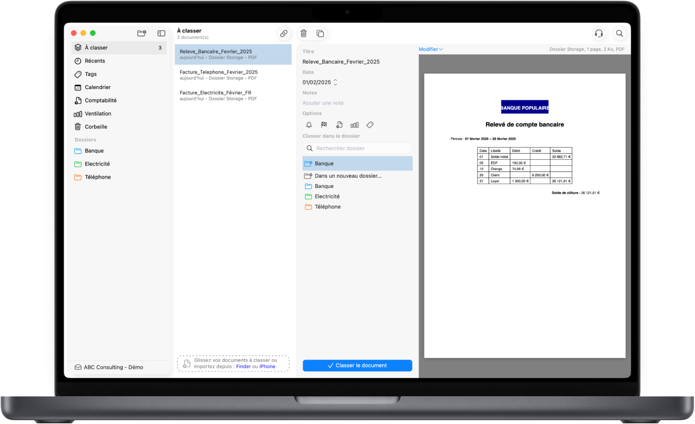 Il permet de classer et d'archiver à la volée les documents papiers et numériques, de manière simple et intuitive.